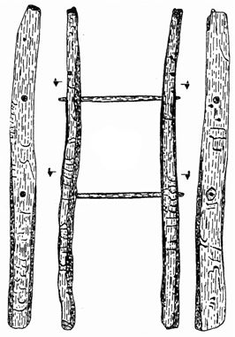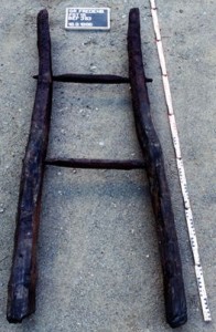 Abb. 3: Groß Fredenbeck FStNr. 15. Auf- und Seitenansichten der Fredenbecker Leiter, die Weite zwischen den Holmen bei der oberen Stufe beträgt 50 cm.
